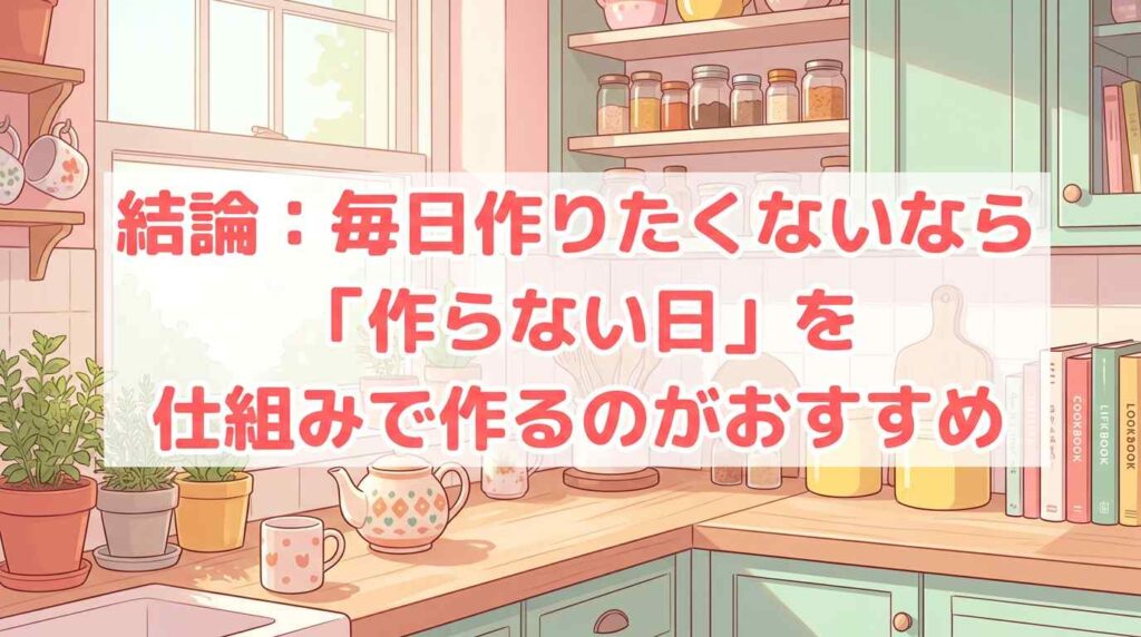 結論:毎日ご飯を作りたくないなら「作らない日」を仕組みで作るのがおすすめ