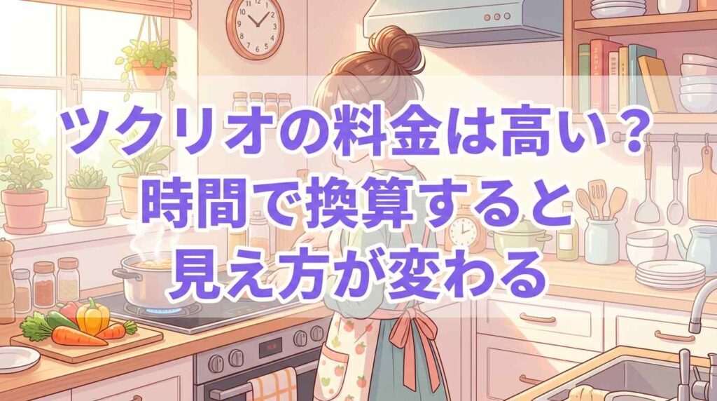 月3万円以上の「自分の時間」を夕食準備に投入している計算。ツクリオとの差額1〜2万円は、この時間を「買っている」と捉えれば決して高くありません。