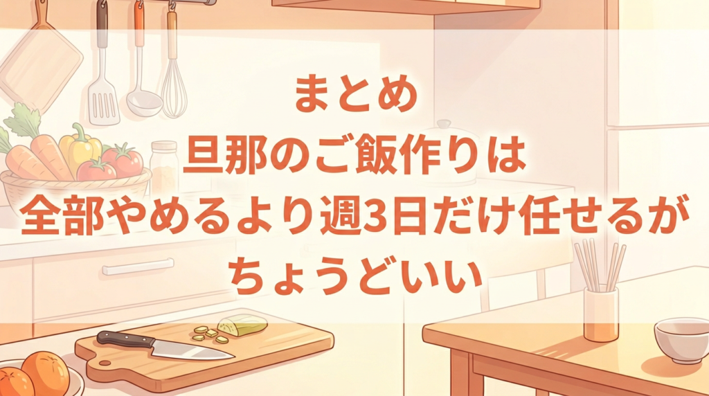 まとめ:旦那のご飯作りは「全部やめる」より「週3日だけ任せる」がちょうどいい