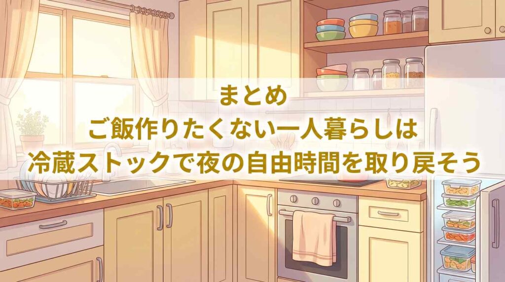 まとめ:ご飯作りたくない一人暮らしは「冷蔵ストック」で夜の自由時間を取り戻そう