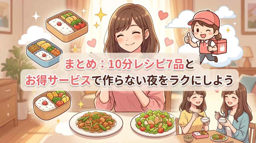 まとめ:10分レシピ7品とお得サービスで作らない夜をラクにしよう
