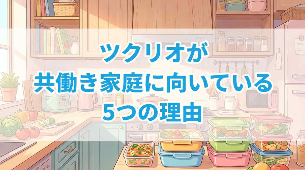 特にツクリオ(旧つくりおき.jp)は、プロが当日調理した冷蔵おかずが届く手料理サブスクで、温めるだけで家族の食卓が整います。