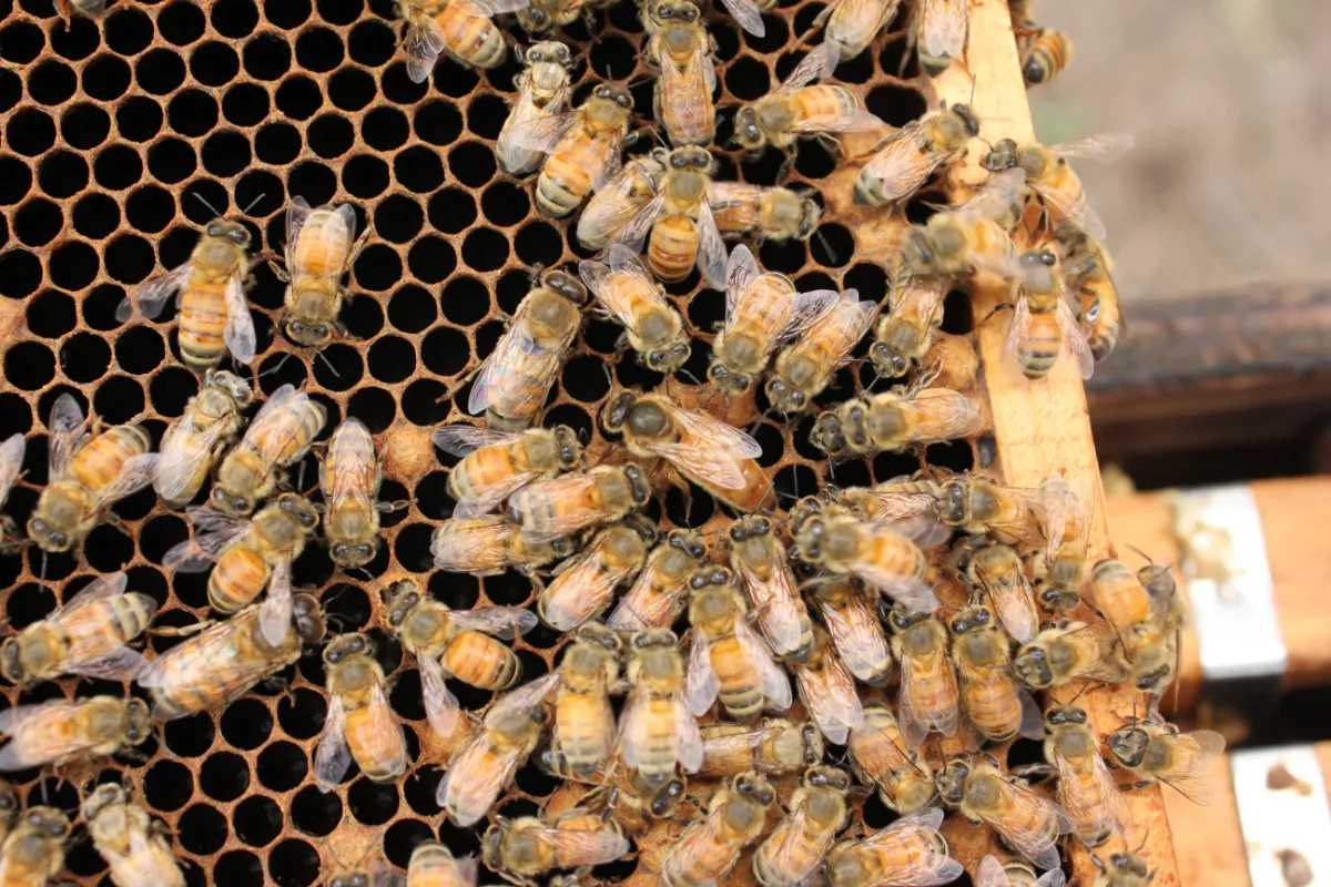 みつばちは羽ばたきによる温風で余分な水分を蒸発させ、糖度を80度近くに高めて、蜜ろうで蓋をして貯蔵します。