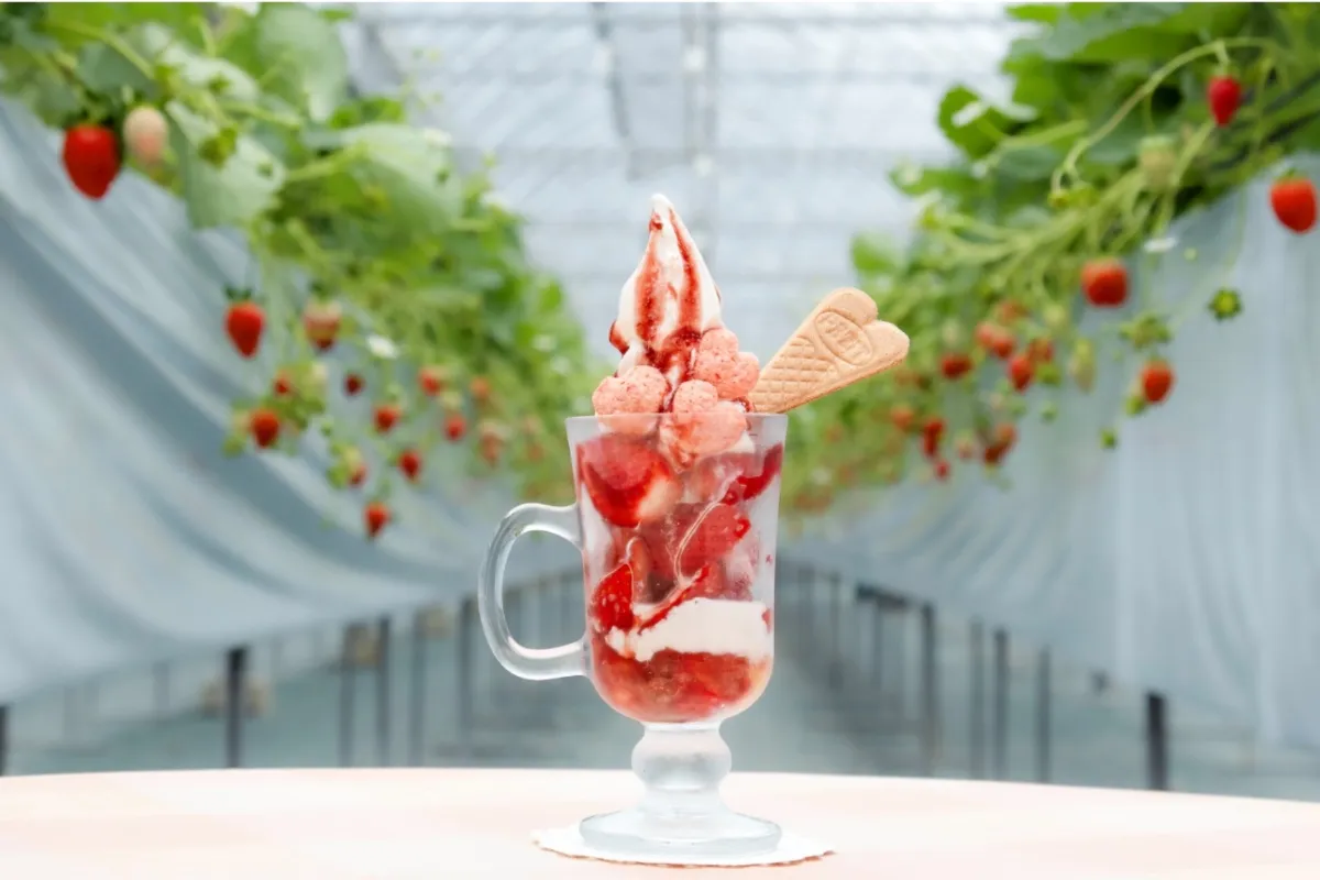 山田養蜂場の完熟はちみつやドレッシング、みつばちいちごを使った、みつばち農園でしか味わえないラインナップです。